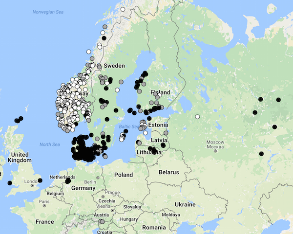 So juniper was clearly a Nordic and Baltic phenomenon, but how could it be so widespread and yet recent? Looking at the data I saw juniper used in nearly all Norwegian recipes (95%), but seemingly less elsewhere. Could it be that it began in Norway in the 17th or 18th century, or slightly before, and then spread with the expansion of the Swedish Empire into Finland and the Baltics?
